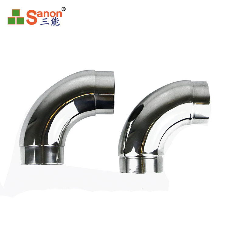 • 湖南直销不锈钢楼梯扶手管 不锈钢扶手弯头 加厚 镜面抛光配件 90度弯拐可用